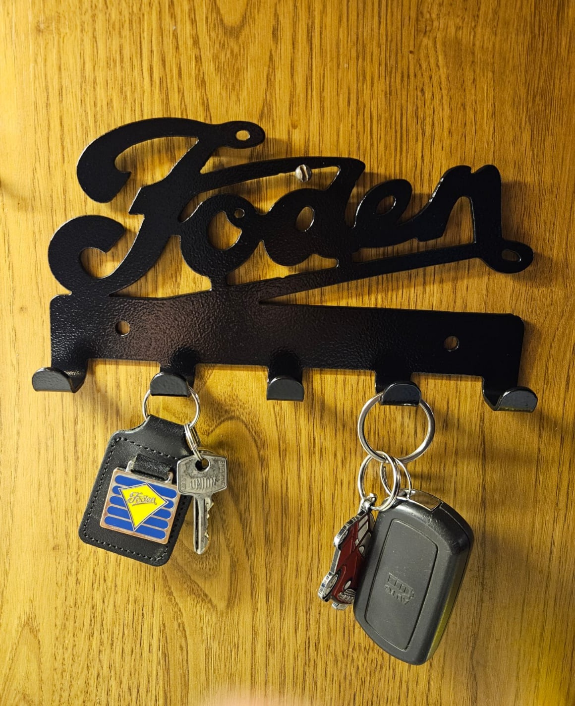 It has 5 hooks suitable for keys etc and comes with 2 pre drilled holes making it easy to put up.